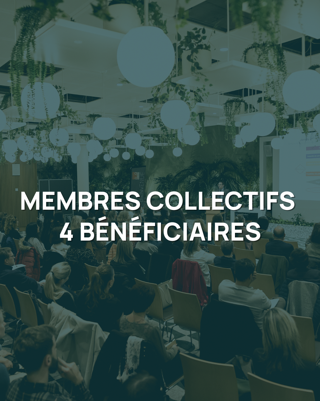 - Pour les membres collectifs la cotisation annuelle s’élève à Fr. 300.- pour 4 bénéficiaires d’accès au site et à la gratuité des événements et Fr. 550.- pour 8 bénéficiaires.